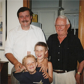 Stuart moves to Houston where he meets his wife, Becky, and has two children, David and Travis.